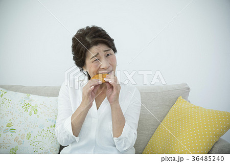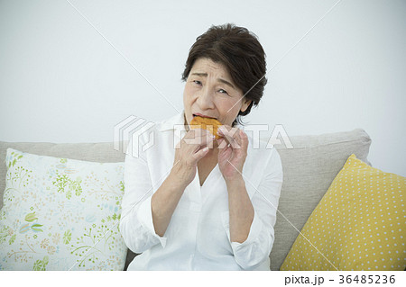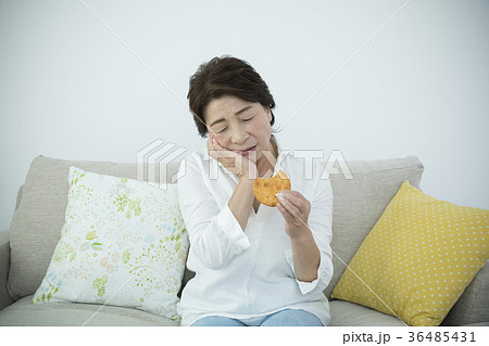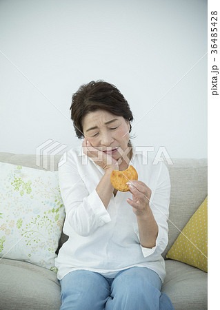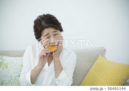 歯の調子が悪く煎餅が噛めないシニア女性