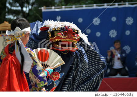 獅子舞 岡山市建部まつり 七社八幡宮の境内で神楽奉納