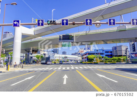 日本の東京都市景観 「錦糸町駅前」の交差点など、街並みを望む(奥は亀戸方面)
