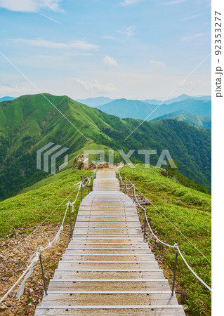 【日本百名山】剣山 真夏の登山道から望む次郎笈と四国山地の山並み 徳島県三好市