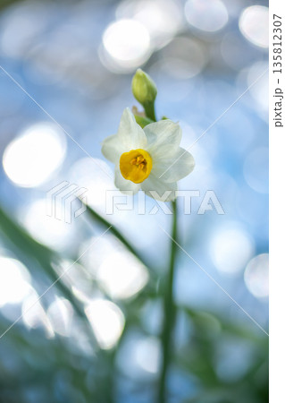 暖かな春の日・レンギョウ・ミツバツツジのボカシ背景素材