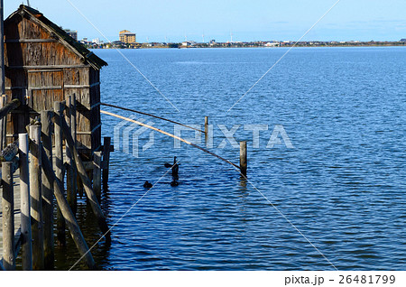 瀬戸内海の四手網漁小屋の風景
