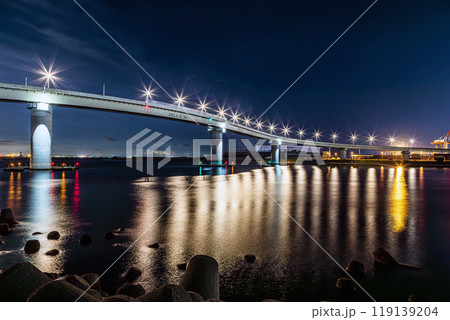 三重県 四日市港に新しくできた橋 いなばポートラインの夜景