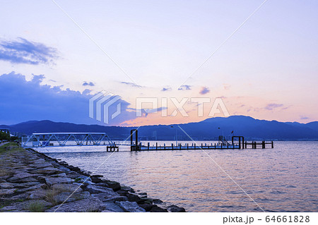滋賀県・大津市・琵琶湖の夕景・比叡山