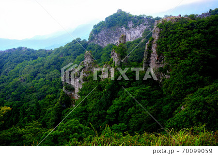 寒霞渓 四望頂展望台から眺める、層雲壇に連なる険しい岩と崖のイメージ 香川県 小豆島(1)