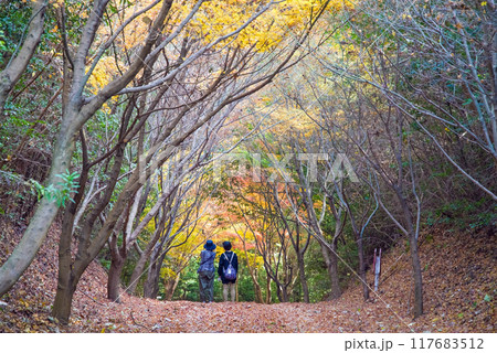 紅葉の中の散策道《三重県四日市市四郷風刺地区・秋の小径》