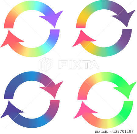 Arrow circle conveying flow and direction with rotating curved motion symbols