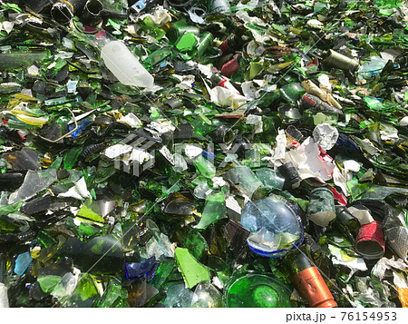 粉砕されたガラスビンのリサイクルゴミ緑色