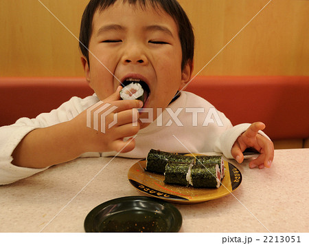 回転寿司で食事をする子ども