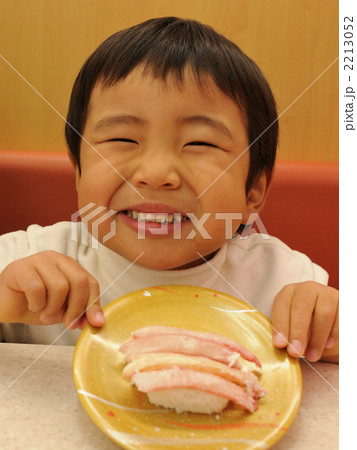 回転ずしで鮪を食べる子ども
