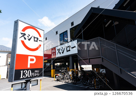 スシロー烏山店の全景 春の青空 東京都世田谷区北烏山1丁目
