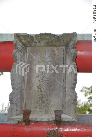 「二岩大明神」の神額(佐渡島・二ツ岩大明神/新潟県佐渡市相川下戸村574)