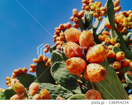 Prickly pear cactus growing in Zungri, Calabria, under blue sky