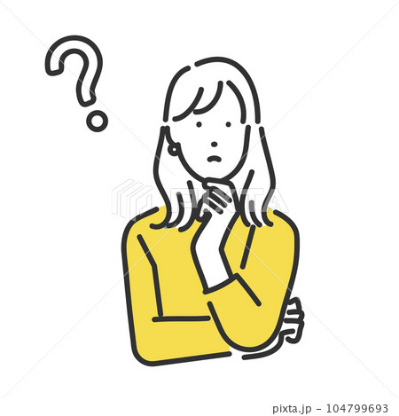 悩んでいる若い女性のイラスト