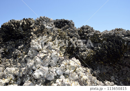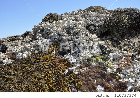岩場の生物 海藻 ヒジキ クロフジツボ カメノテ ワイド