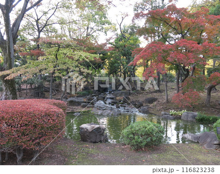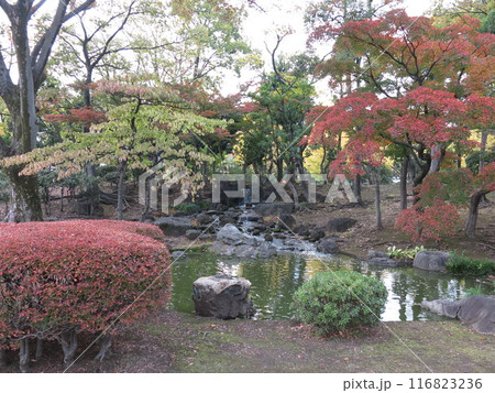 紅葉が美しい国会前庭の南庭(滝・小川)
