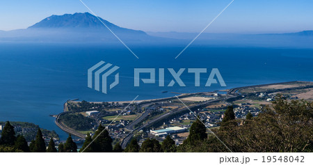 鹿児島県国分城山公園から見る国分市街地と錦江湾・桜島ジオパークの夕景