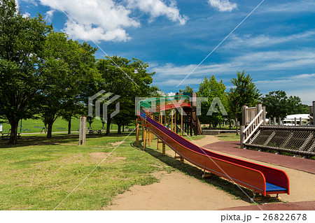 越後丘陵公園 夏の空と芝生 新潟県 長岡市
