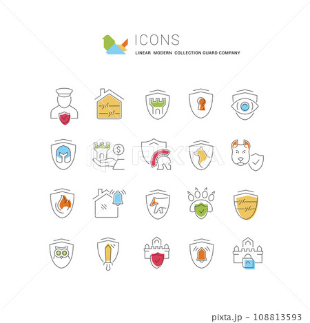 Set Vector Line Icons of Guard Company
