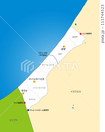 パレスチナのガザ地区の地図、イスラエル、エジプト、日本語の地名入り