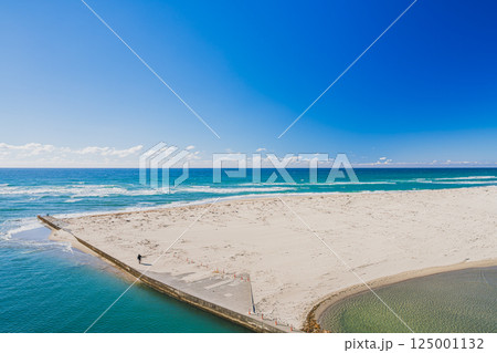 掛川市にある青空に映える潮騒橋から見た海と国安海岸の風景(静岡県)