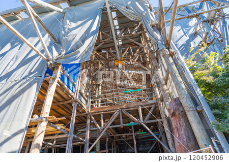 京都市東山区 改修工事中の国宝妙法院庫裏