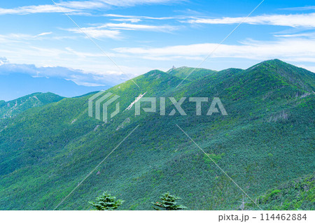 【山岳素材】夏の国師岳から見る山岳風景【山梨県】