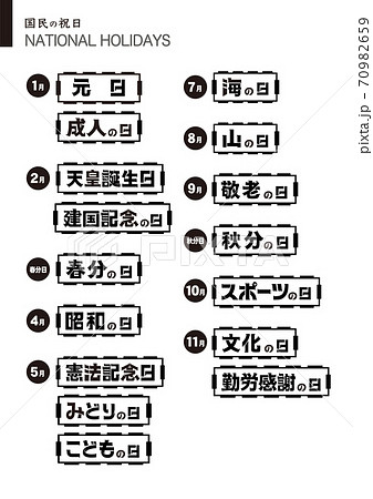 国民の祝日の画像素材(写真・イラスト)は2,005件あります。この検索結果では、ベクター、カレンダー、端午の節句、鯉のぼり、ゴールデンウィーク、アイコン、男の子、子供の日、秋、国旗、子供、成人の日、敬老、文字、正月などの絞り込みキーワードがよく使われています。 全て表示