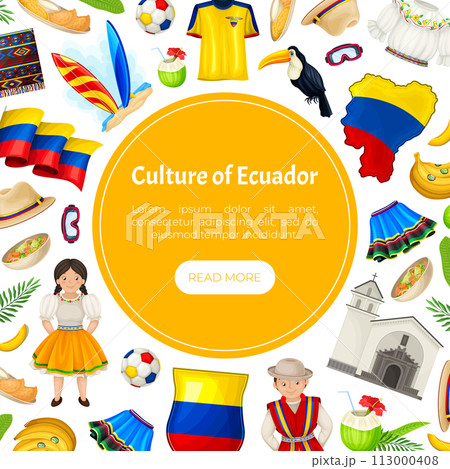 Ecuador National Symbols Banner Design Vector Template