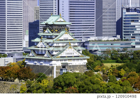 大阪城天守閣と立ち並ぶ高層ビル群(大阪府大阪市)