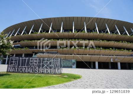 新国立競技場 国立競技場 風景 日本 東京 オリンピック スタジアム 快晴 青空 アップ 完成 竣工
