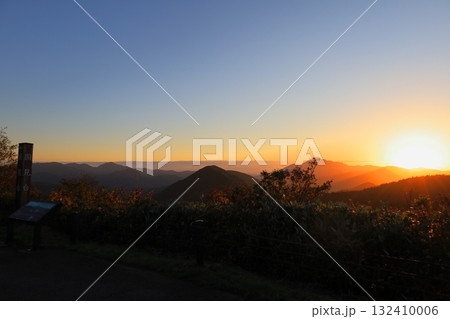 夕暮れの磐梯吾妻スカイライン国見台からの磐梯山
