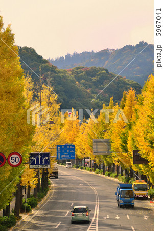 東京都八王子市の風景 11月 紅葉 甲州街道 国道20号 イチョウ並木