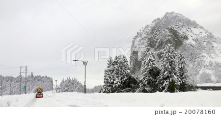 下田の名所八木鼻を行く除雪車(新潟県三条市下田にて)