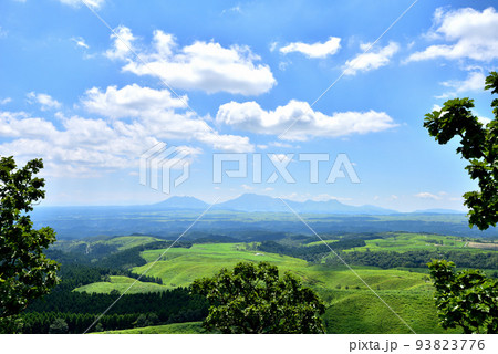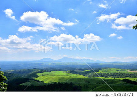 阿蘇五岳 阿蘇涅槃像 久住高原展望台から望む阿蘇五岳 大分県竹田市久住町久住