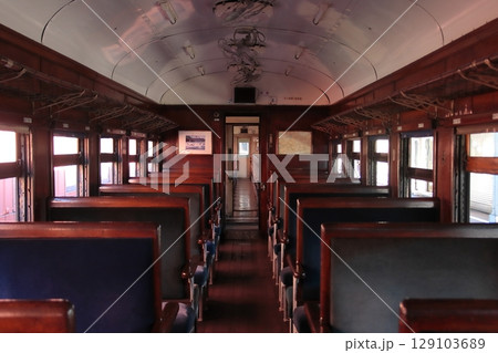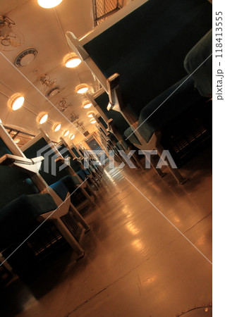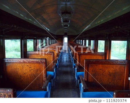 レトロな内装の国鉄オハ35系旧型客車の内装(大井川鉄道保存車両)