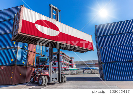 Products shipping cargo goods with Greenland flag for import export business from Nuuk Port, Sisimiut Greenland Country