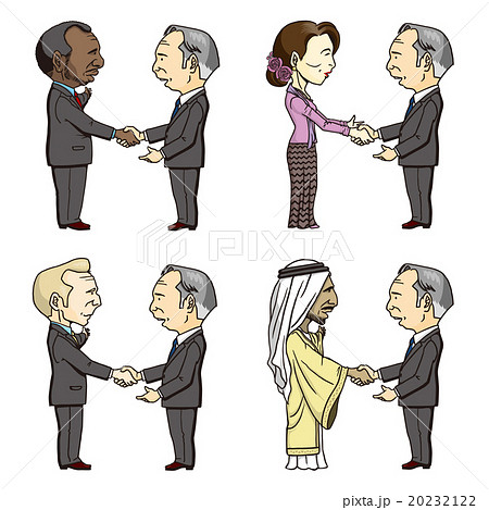 国交・政治のイメージイラスト(白人男性 対 各国)