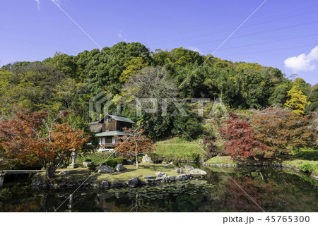 足守藩主大名庭園 晩秋の近水園 紅葉の庭と池2 岡山県岡山市北区足守