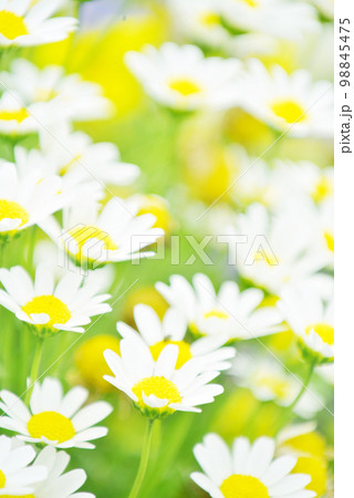 花壇のマーガレットの花の風景