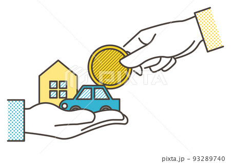 家や車、お金といった財産を渡す遺産相続のイメージ【ベクターイラスト素材】