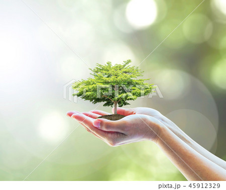 Man holding light bulb environment with that represents green energy Renewable and clean energy.