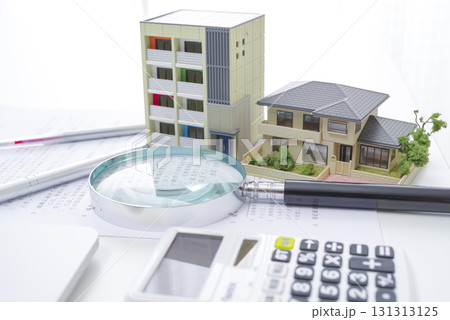 資産価値を確認する不動産の模型と虫眼鏡