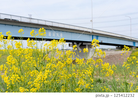 菜の花と運河大橋<千葉県流山市>