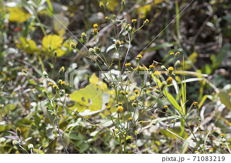 ひっつき虫 (コセンダングサ)にとまるハチ