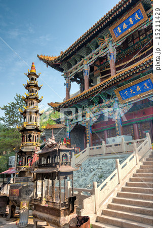 中国 青海省 西寧市北山に建つ道教寺院・北禅寺の桟道回廊と楼閣