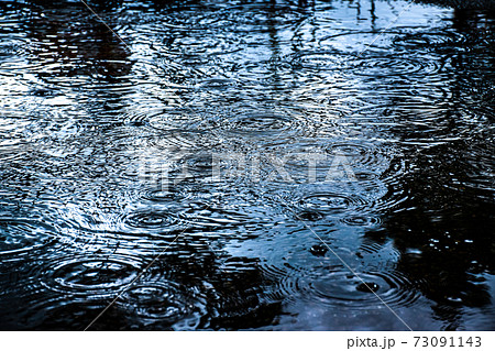 【雨の日のイメージ】水たまりに降る雨が作る波紋