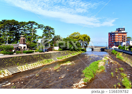 金山橋/土肥山川より下流/土肥温泉街方面を望む(静岡県伊豆市)【2024.7】