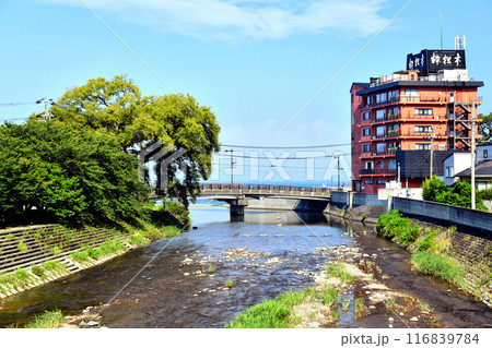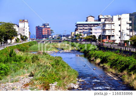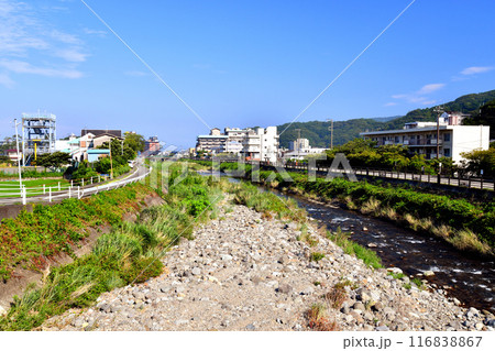 金山橋/土肥山川付近より下流/土肥温泉街方面を望む(静岡県伊豆市)【2024.7】