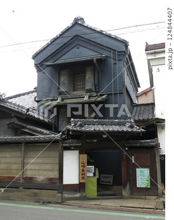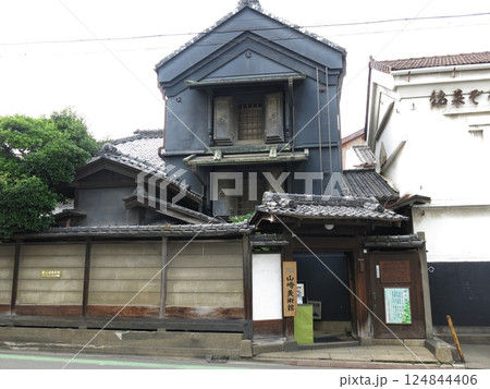 倉吉白壁土蔵群、鳥取県の名所、国登録有形文化財の豊田家住宅、切妻造り、棧瓦葺き、平入、木造二階建